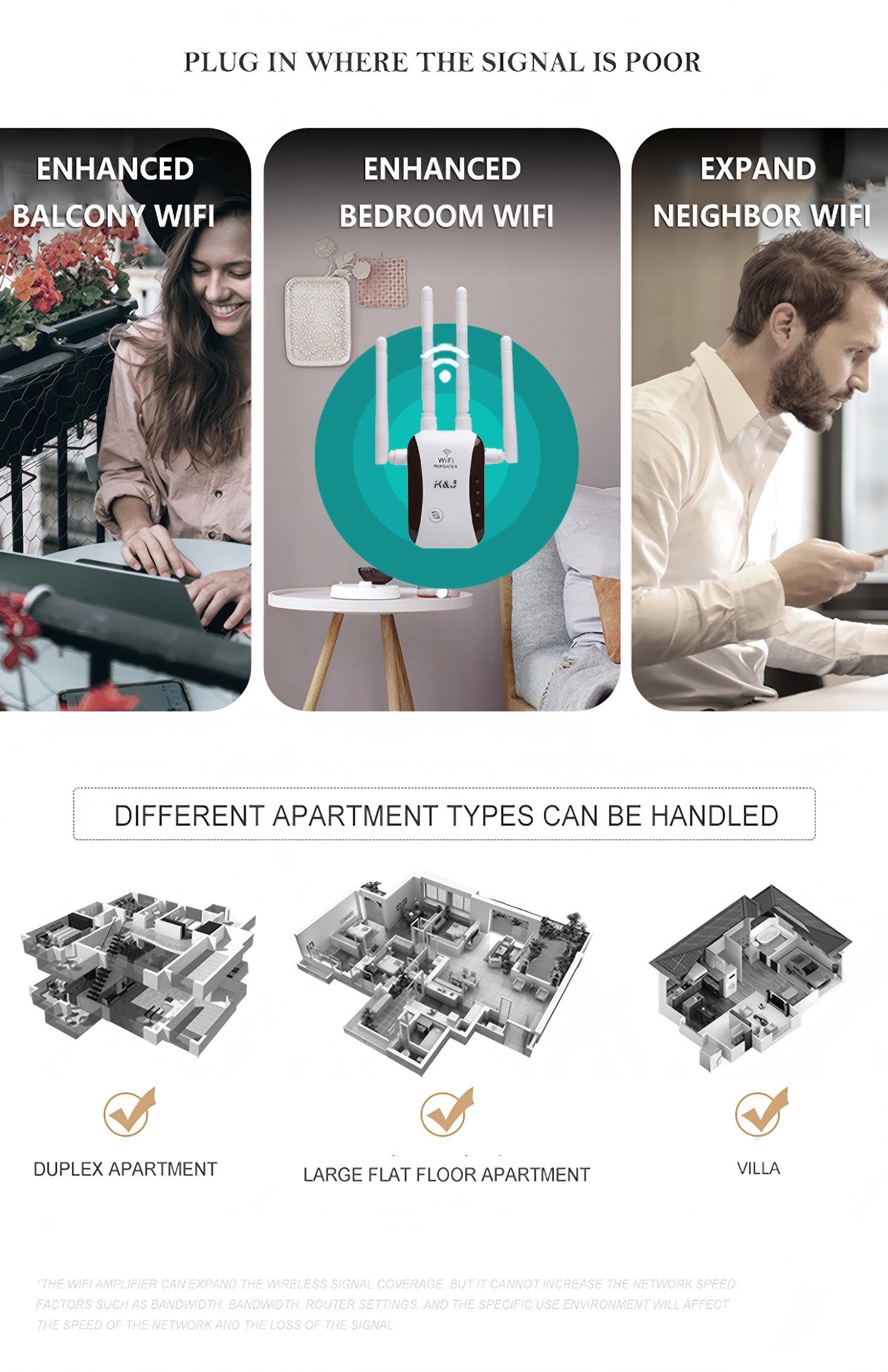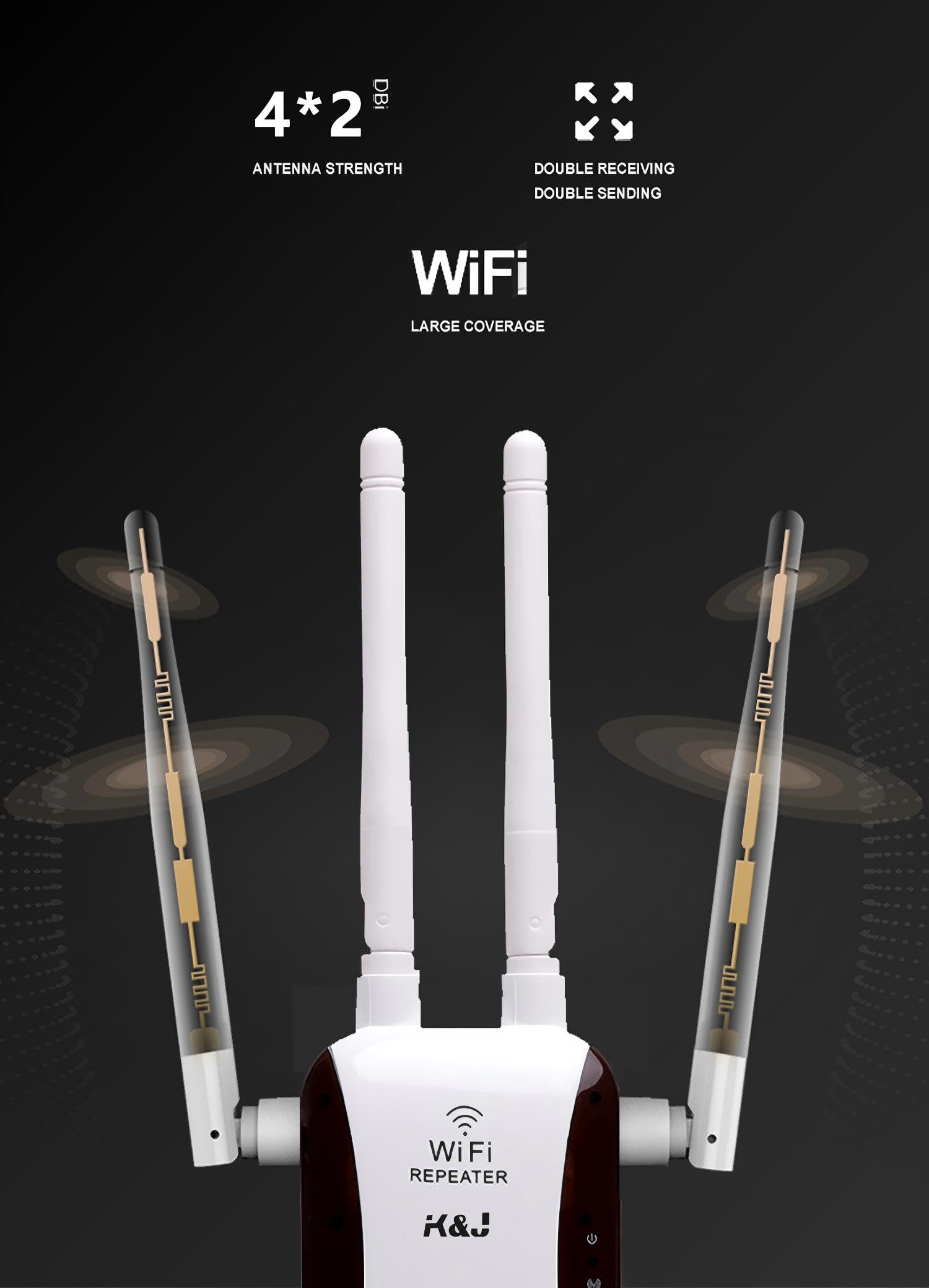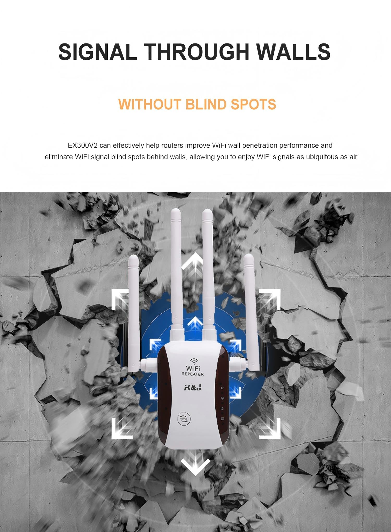 - Super Signal Coverage:Experience the latest in WiFi technology with our Super Signal Coverage Extender, equipped with four high-performance external antennas. This cutting-edge device employs advanced signal amplification to effortlessly penetrate walls, eliminating dead zones and providing full, reliable coverage throughout your space. Enjoy an extended and faster signal range, perfect for smooth online gaming, crystal-clear video calls, and uninterrupted 4K streaming