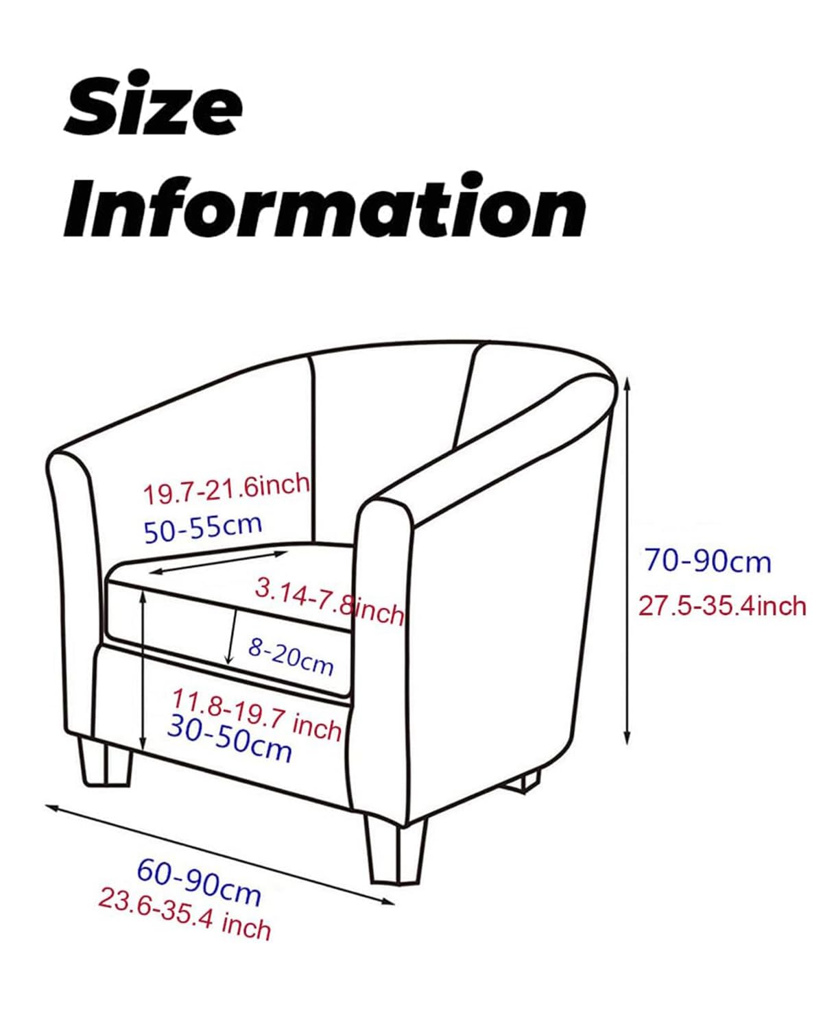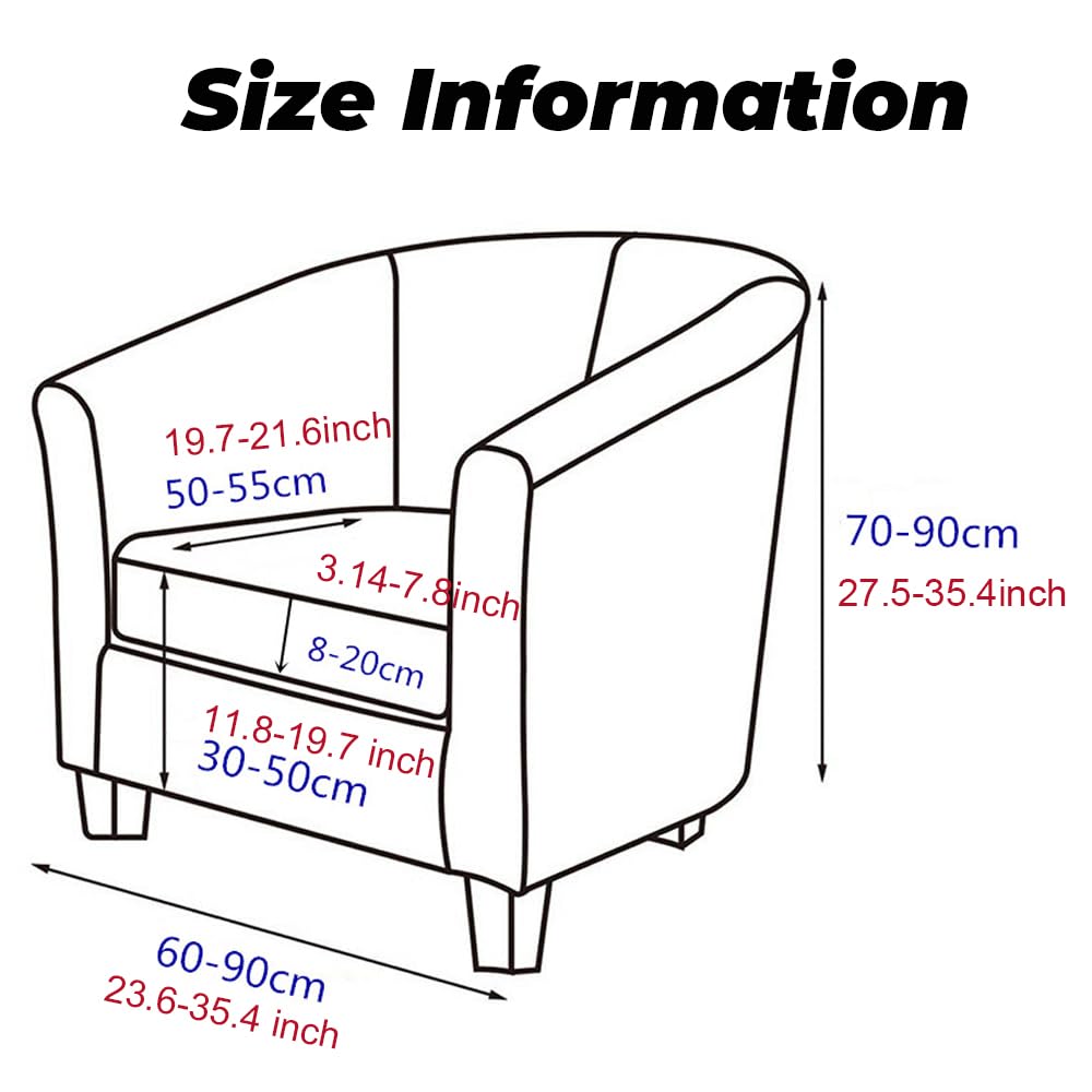 - SIZE: Seat cushion length 46-56 cm, Chair height 70-80cm, Chair width 70-80cm. Please refer to the product size chart.Then,measure your tub chair prior to purchasing to ensure the best fit. It’s easy to install the cover to the chair due to the high elasticity. Also easy for daily replacement.