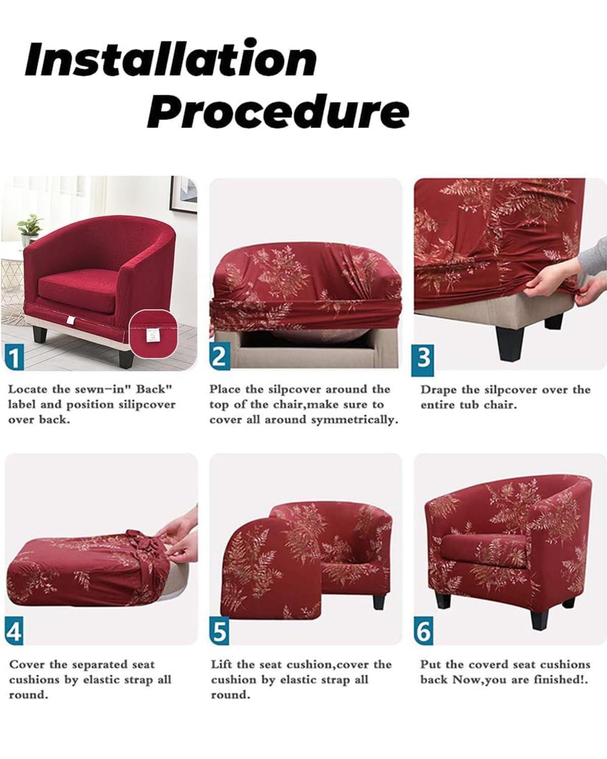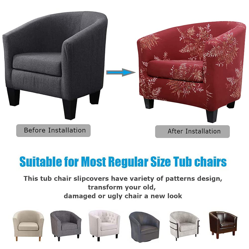 - 2 IN 1DESIGN: Each Pack includes: 1 bathtub chair cover + 1 slipcover with separate seat cushion cover. Compared to the traditional one piece chair cover, the two-piece club chair cover can better wrap and fit the chair and cushion. You don't have to buy a new tub chair and also has saved an old chair from being thrown out.