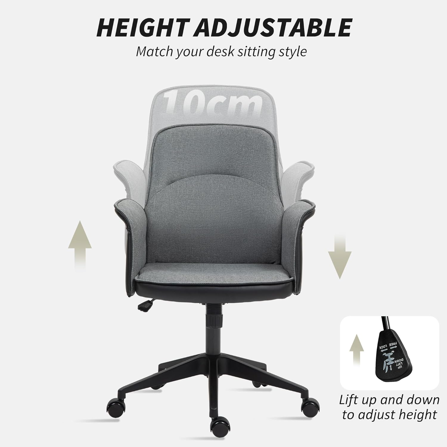 HOMCOM Home Office Chair, Upholstered Linen Desk Chair with Adjustable Height and Tilt Function, Swivel Chair for Home Office and Study Room, Grey