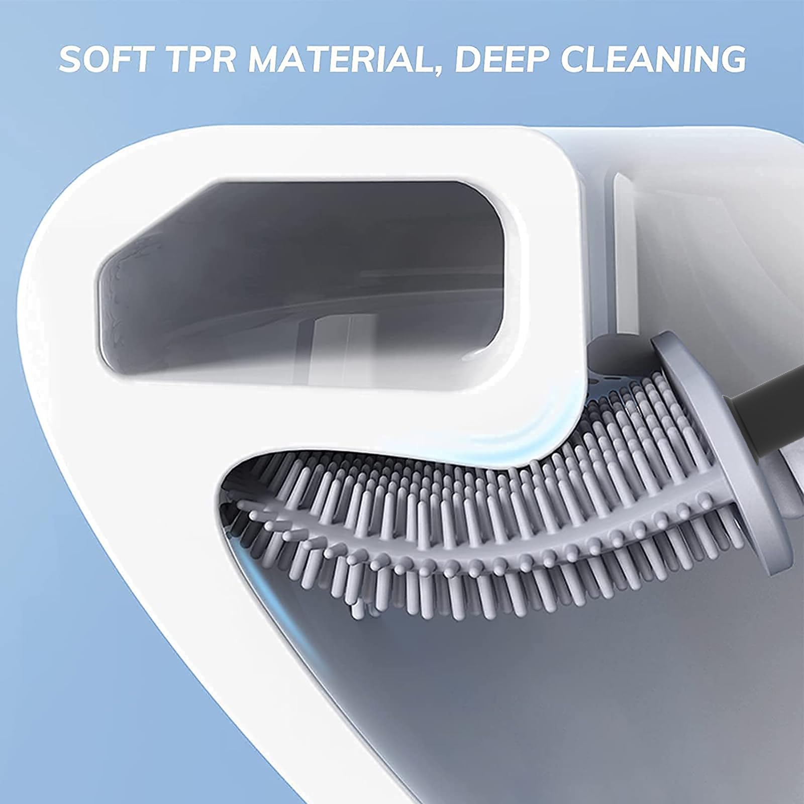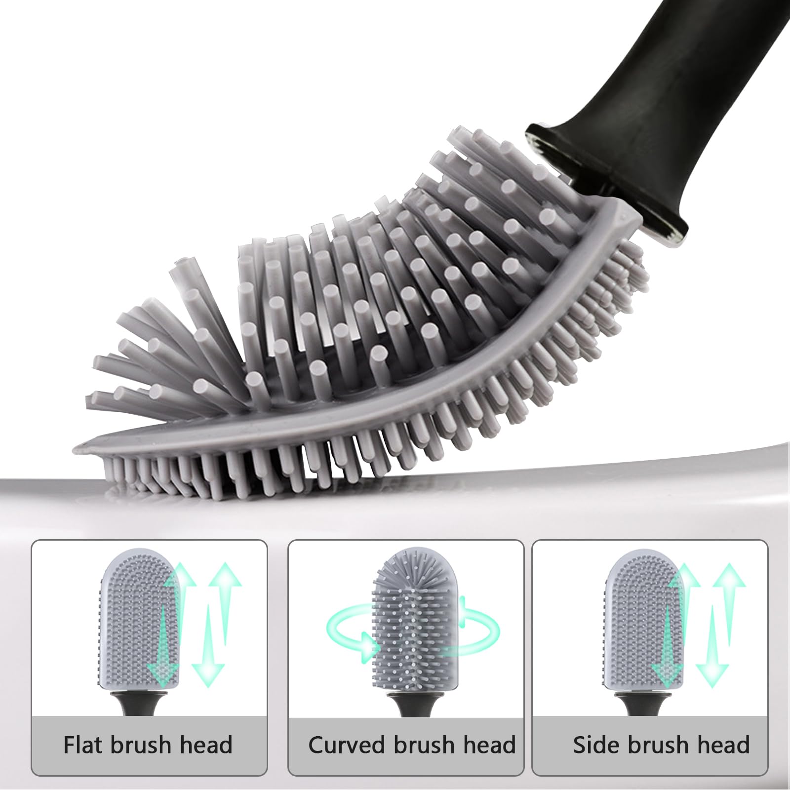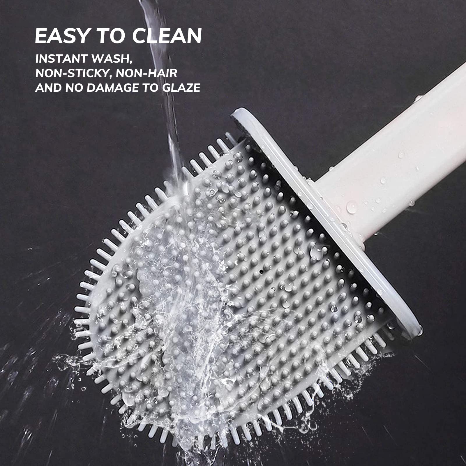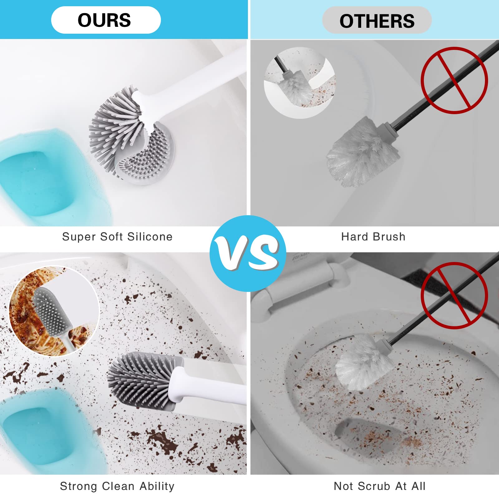 - 🚽【360°Deep Cleaning Every Dead Ends】: Silicone Toilet Brush is made of rubbery material that durable, the brush never wears out, does not deform. The soft flat toilet brush can enter the corners and crevices. Designed for deep cleaning on rims and other hard-to-reach places, and does not hurt the glaze of the toilet.